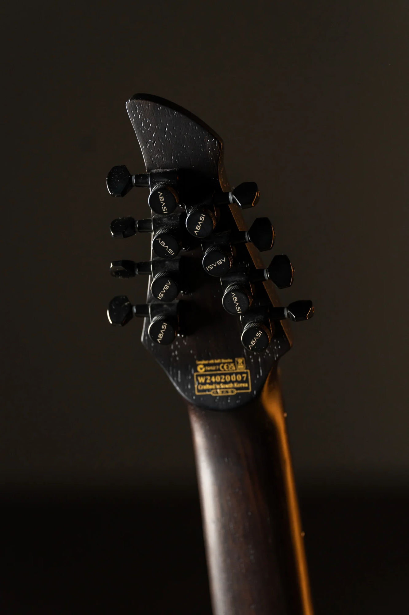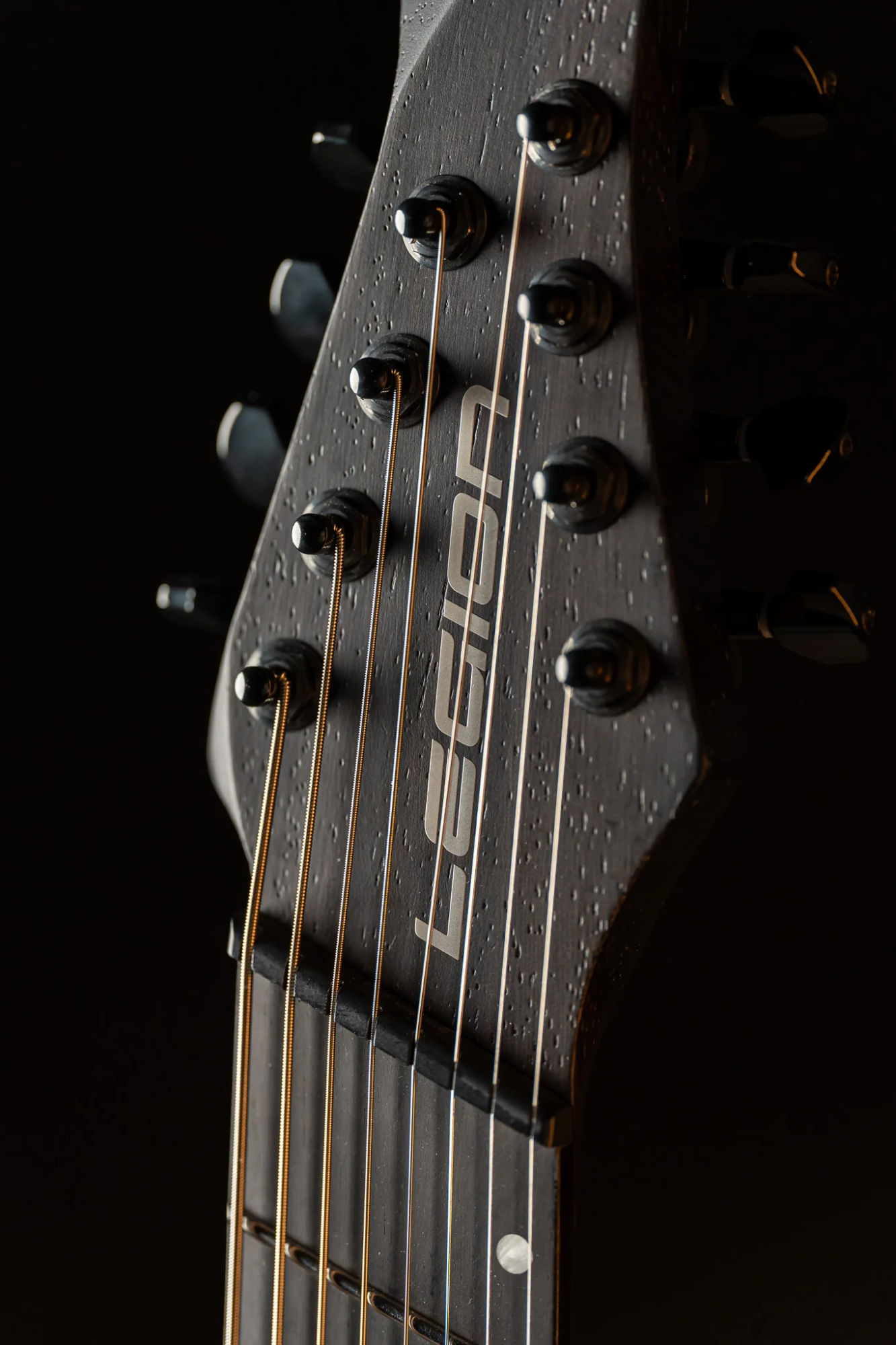 Constructed with a bolt-on wenge neck and smooth ebony fretboard, the Larada 8 Legion delivers exceptional balance and resonance across all eight strings. The multi-scale design with fanned frets optimizes string tension—enhancing low-end clarity while keeping the high frets fluid and easy to play. A compound radius fingerboard and 24 X-jumbo stainless-steel frets ensure fast action and responsive feel from nut to tip.