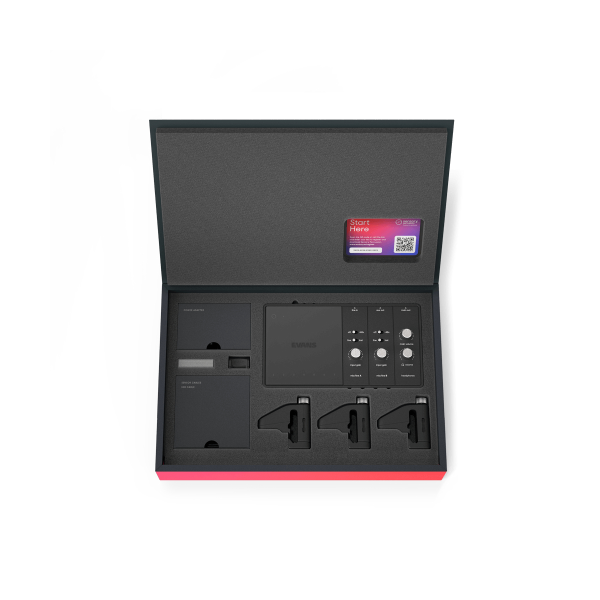 The Evans Hybrid Sensory Percussion System transforms acoustic drums into powerful digital instruments by combining responsive sensor technology with advanced sound-design software. Each sensor captures nuanced performance details, including velocity, position, and playing style, enabling expressive control beyond traditional triggers. The system responds to brushwork, ghost notes, rimshots, and more with remarkable accuracy.
