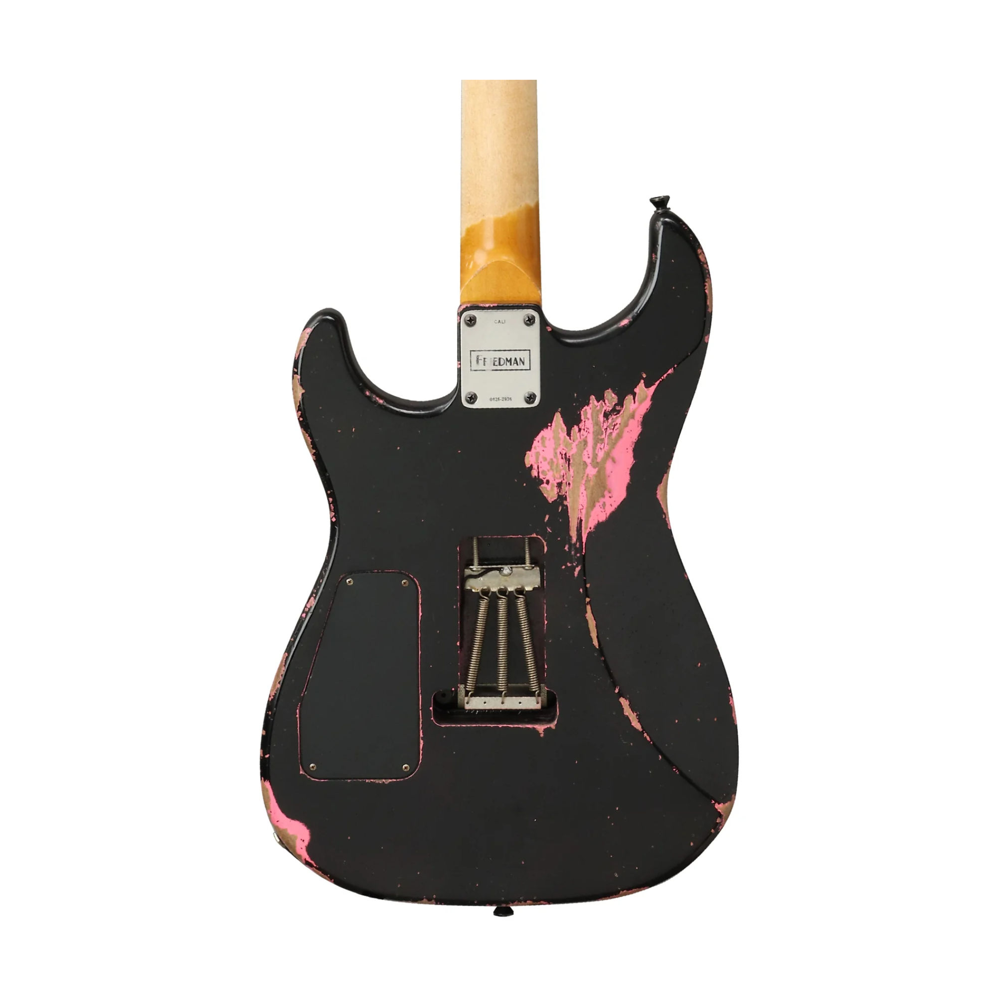 The Friedman Cali AMMFB-F0F-NQ52-BVBU is designed for modern players who want classic feel with uncompromising performance. Its alder body provides a balanced tonal foundation, while the maple neck and fretboard deliver snap, clarity, and fast response. Finished in a striking Black over Hot Pink nitro lacquer with medium-heavy aging and medium neck tint, this guitar offers a broken-in look and feel straight out of the case.