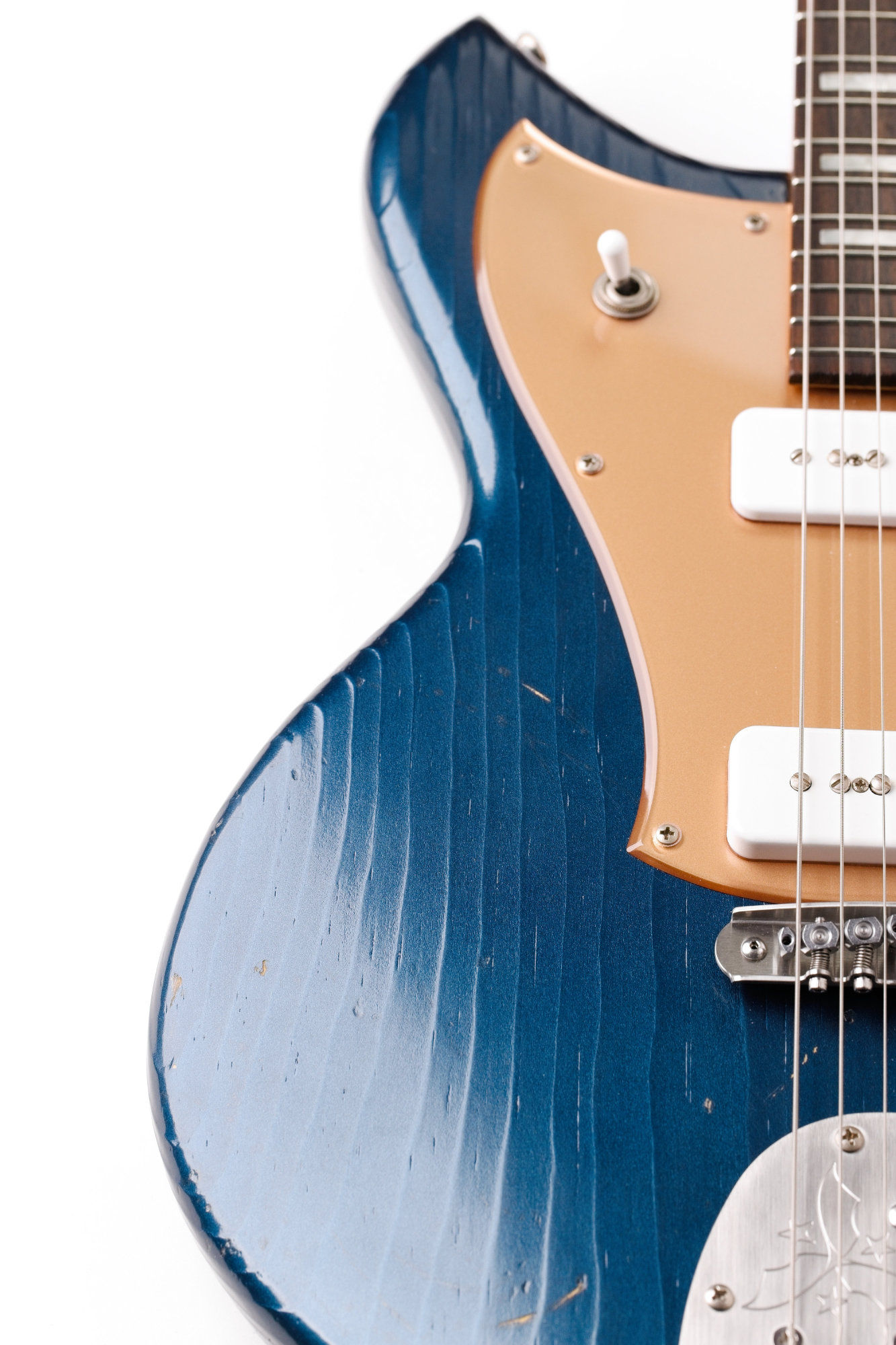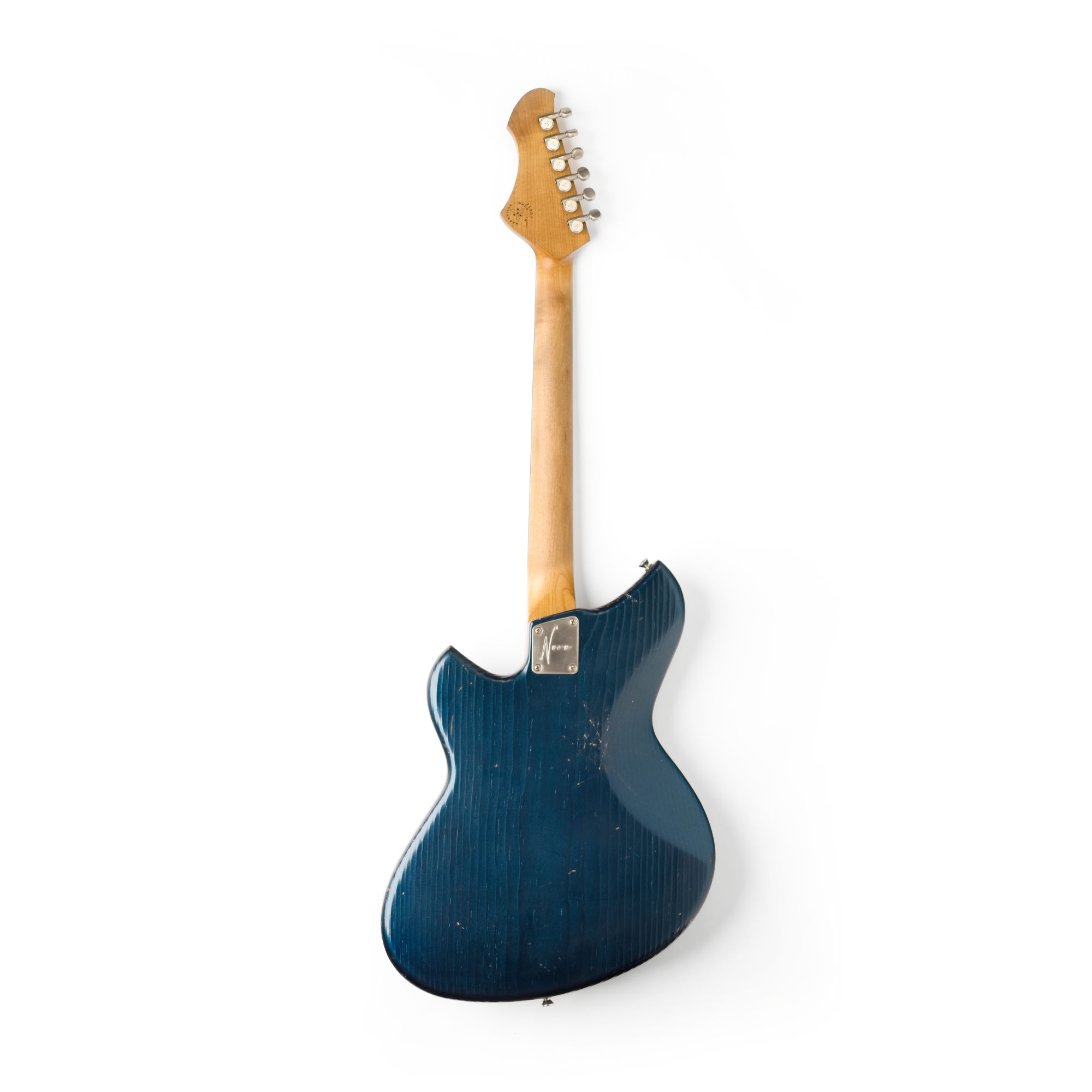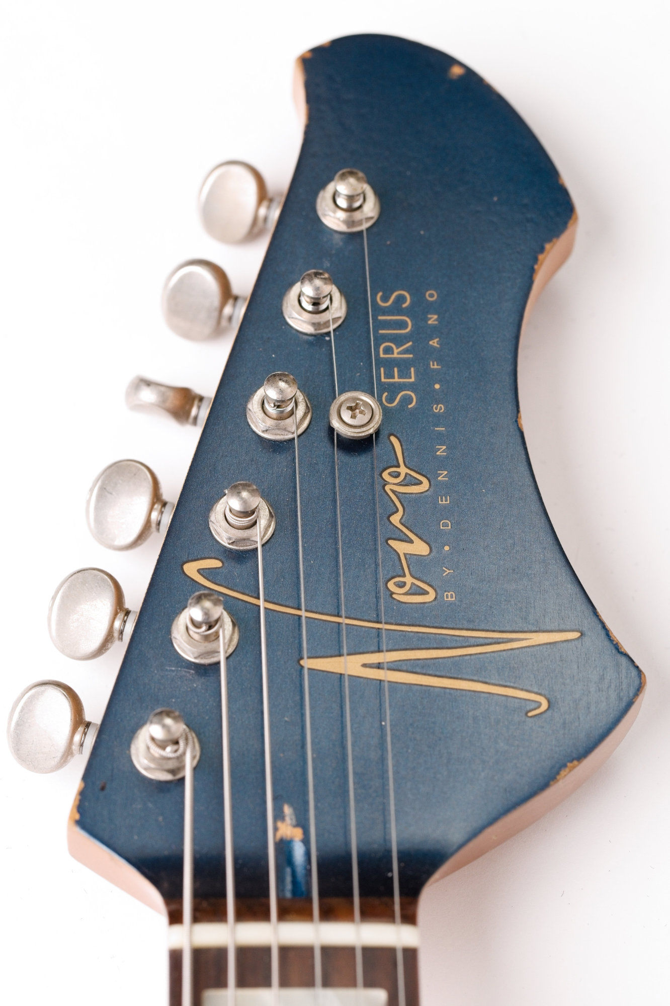 The Novo Serus J Custom in Lake Como Blue is a boutique instrument that captures the soul of classic offsets while elevating performance for modern players. Crafted in Nashville under the eye of master luthier Dennis Fano, this guitar features a lightweight tempered pine body and a figured tempered maple neck that resonate with clarity and depth. Its extra light distress finish gives the Serus J a vintage-worn character right out of the case, making it both visually striking and instantly inspiring.