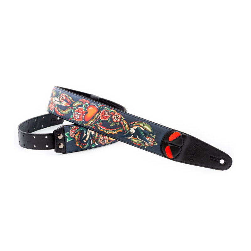 Elevate your playing experience with the RightOn! Tattoo Guitar Strap, a perfect fusion of eye-catching design and practical performance. Crafted to deliver both visual flair and long-lasting comfort, this strap features a distinctive tattoo-inspired pattern in muted grey tones that complements any guitar finish. Whether you’re rocking out on stage or practicing at home, its bold look helps you stand out.